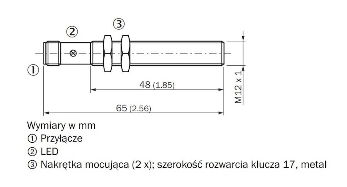 - ŚrednicaØ 12 mmMaksymalny moment dokręcenia≤ 12 NmGwintM12x1PrzyłączeWtyk M12, 4-pinowyWyjście przełączającePNPTemperatura otoczenia-25 do +75°CHistereza5 - 15 %Powtarzalność≤ 2 %Długość obudowy65 mmCzęstotliwość przełączania2000 HzKształt korpusuStandardowa konstrukcjaZasięg S4 mmZasięg gwarantowany S3,24 mmWykonanie elektryczneDC 3-przewodowePrąd stały≤ 200 mAPrąd jałowy≤ 10 mAPowierzchnia aktywnaTworzywo sztuczne, PA66Użyteczna długość gwintu48 mm