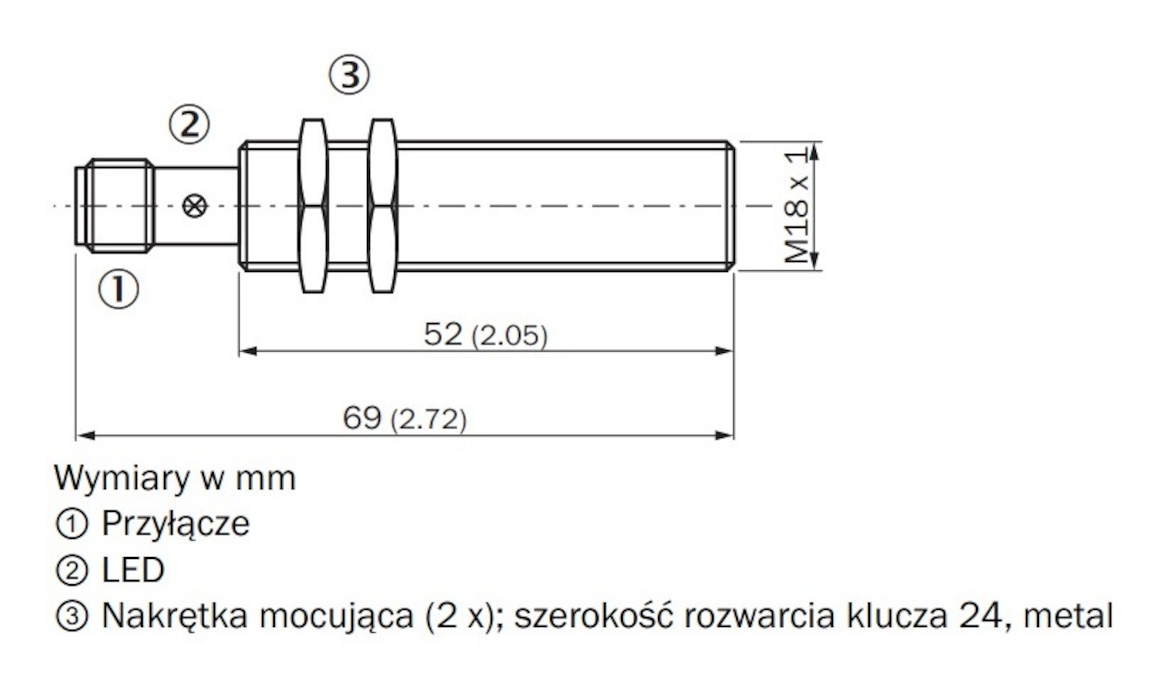 - ŚrednicaØ 12 mmMaksymalny moment dokręcenia≤ 40 NmGwintM18x1PrzyłączeWtyk M12, 4-pinowyWyjście przełączającePNPTemperatura otoczenia-25 do +75°CHistereza5 - 15 %Powtarzalność≤ 2 %Długość obudowy69 mmCzęstotliwość przełączania1000 HZKształt korpusuStandardowa konstrukcjaZasięg S8 mmZasięg gwarantowany S6,48 mmWykonanie elektryczneDC 4-przewodowePrąd stały≤ 200 mAPrąd jałowy≤ 10 mAPowierzchnia aktywnaTworzywo sztuczne, PA66Użyteczna długość gwintu52 mm