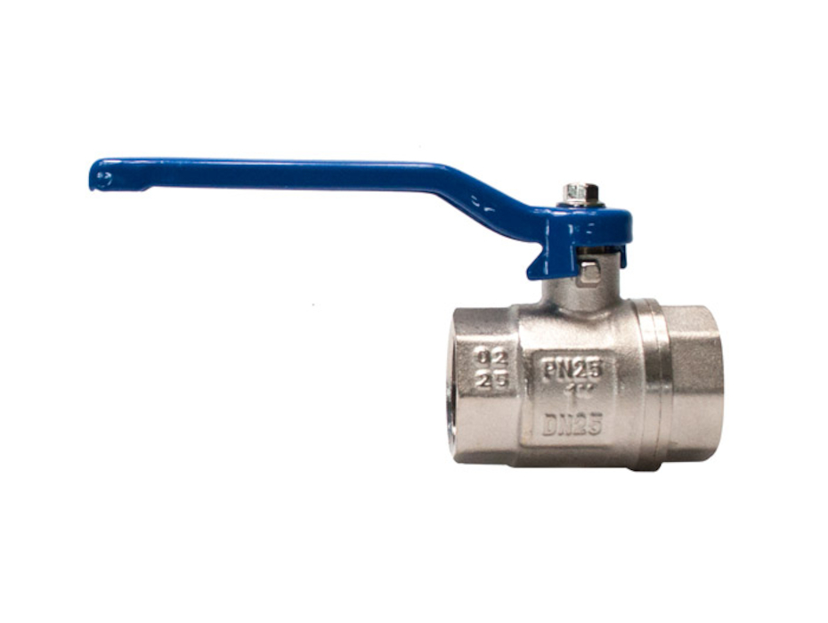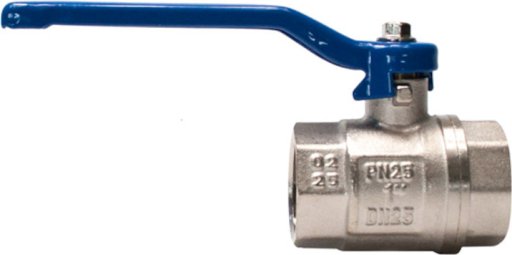 Zawór kulowy gwintowany G 1 PTFE WW PN 25bar mosiądz niklowany rączka niebieska stal 334.06-R