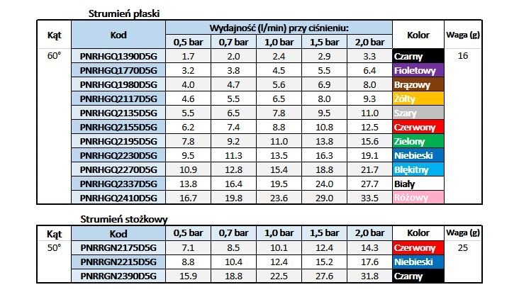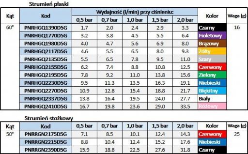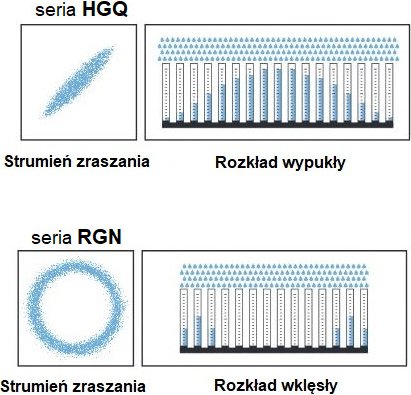 | Typ dyszy | HGQ - płaska / RGN - stożkowa |