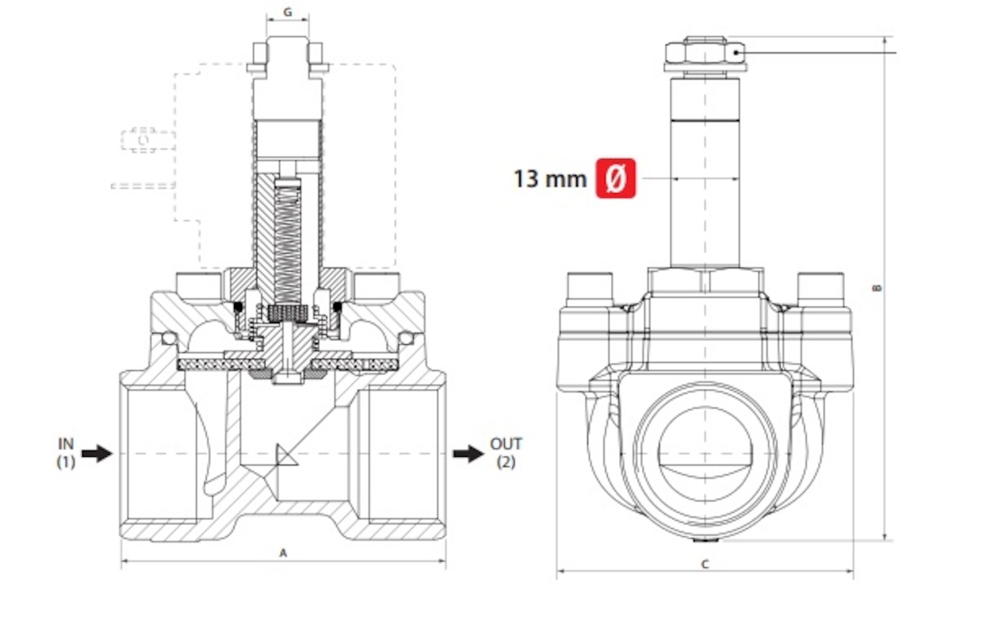 - Elektrozawór membranowy mosiężny FMM 06F kombinowanego działania 2/2 NC FKM/NBR/EPDM PN16 3/8"-1" kompletny