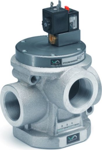 Elektrozawór rozdzielający pneumatyczny wielkoprzepływowy wspomagany (z pilotem) PV32 3/2 NC do próżni G1/2"-G2" -0,9-0 bar