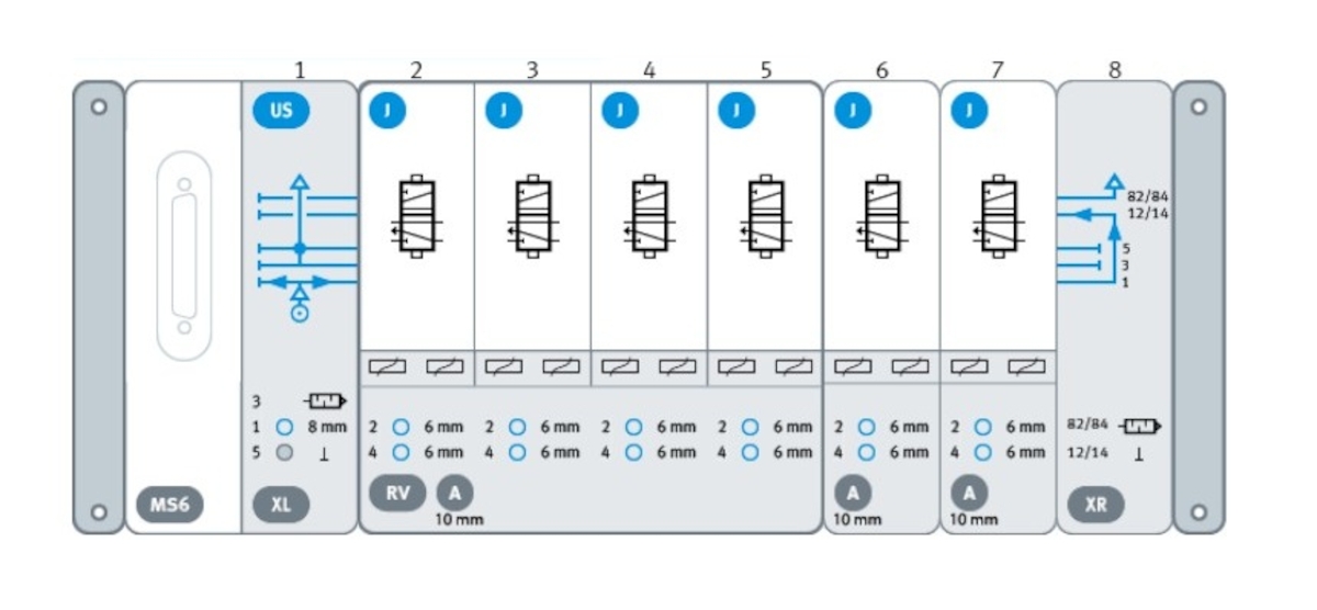 - Wyspa VTUX, Multipin, 6x 5/2 bistabilny VTUX-A-P-MS6-SD-US6J-XLRV6AXR