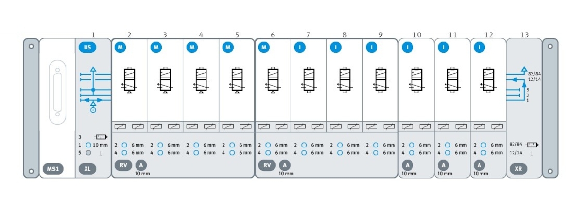 - Wyspa VTUX, Multipin, 5x 5/2 mono, 6x 5/2 bistab VTUX-A-P-MS1-US5M6J-XLRV4ARV7AXR-IPX0+H