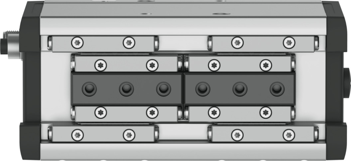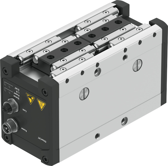 - Wielkość36Całkowity skok45 MMSkok na szczękę chwytającąod 22.5 MMMaks. luz szczęk chwytających Szod 0.35 MMDokładność powtarzalności chwytakaod 0.02 MMLiczba szczęk chwytaka2Typ napęduelektrycznyPozycja montażudowolnyTryb pracy sterownikainterpolacja przez magistralę polowąFunkcja chwytakaRównolegleKonstrukcjaPasek zębatyProwadnicaProwadzenie na rolkachSygnalizacja położeniaEnkoder silnikaPomoc w konfiguracjiPlik ESISymbol00992258WariantyNie wolno stosować metali, których głównym składnikiem jest miedź, cynk lub nikiel. Wyjątkiem są niklowane stale, niklowane chemicznie powierzchnie, płytki drukowane, przewody, elektryczne łączniki wtykowe i cewki.Wskaźnik gotowości do pracyDioda LEDPrędkość pozycjonowania na szczękę chwytakaod 40 MMSPrzyspieszenie pozycjonowania na szczękę chwytakaod 1 MS2Prędkość chwytania na szczękę chwytakaod 3 MMSLiczba adresów MAC4Maks. pobór prąduod 3000 MAMaks. pobór prądu, obciążenieod 2 AMaks. pobór prądu, logikaod 1 AZnamionowe napięcie robocze DCod 24 VNapięcie nominalne, zasilanie logiki DC24 VZnamionowe napięcie zasilania DCod 24 VPrąd znamionowy, silnikod 1.3 ADop. zakres zasilania obciążeń± 10 %Dopuszczalny zakres napięcia zasilania logiki± 10%Znak KCKC-EMVZnak CE (patrz deklaracja zgodności)Zgodnie z dyrektywą kompatybilności elektromagnetycznej UEZnak UKCA (patrz deklaracja zgodności)wg przepisów UK dot. EMVOdporność na wstrząsyTest odporności na wstrząsy o stopniu intensywności 2 wg FN 942017-5 i EN 60068-2-27Klasa odporności korozyjnej wg normy Festo0 - Brak obciążenia korozyjnegoZgodność z LABSVDMA24364-strefa IIIPrzydatność do produkcji akumulatorów litowo-jonowychNie wolno stosować metali, w których zawartość miedzi, cynku lub niklu przekracza 1% masy. Wyjątkiem są nikiel w stali, powierzchnie niklowane chemicznie, płytki drukowane, kable, złącza elektryczne i cewkiKlasa CleanroomKlasa 6 wg ISO 14644-1Odporność na drganiaTest odporności podczas transportu przy drganiach o stopniu intensywności 2 wg FN 942017-4 i EN 60068-2-6Względna wilgotność powietrza0 - 95 %Poziom ciśnienia akustycznegood 60 DBAStopień ochronyIP40Temperatura otoczeniado 50 GCCałkowita siła chwytuod 520 NZakres siły chwytania na każdą szczękę chwytakaod 260 NMasowy moment bezwładnościod 54 KGCMaks. siła na szczękach chwytaka Fz, statyczna1100 NMaks. moment na szczęce chwytaka Mx, statyczny13.9 NMMaks. moment na szczęce chwytaka My statyczny34.5 NMMaks. moment na szczęce chwytaka Mz statyczny13.9 NMZnamionowy moment obrotowyod 0.183 NMInterwał smarowania uzupełniającego elementów prowadnic1 YUEWaga produktuod 2100 GProfil komunikacjiCiA402Interfejs magistrali polowej, rodzaj przyłączaGniazdo wtykoweInterfejs magistrali polowej, technologia przyłączeniowaM12x1, kodowanie D wg EN 61076-2-101Interfejs magistrali polowej, liczba pinów/żyłod 4Interfejs magistrali polowej, protokółEtherCATPrzyłącze elektryczne2x M12Złącze magistrali polowejEtherCATTyp mocowaniaprzy pomocy gwintu wew. i tulejki centrującejInformacja o materiałachZgodność z dyrektywą RoHSMateriał obudowyAluminium anodowaneMateriał szczęk chwytakaStal