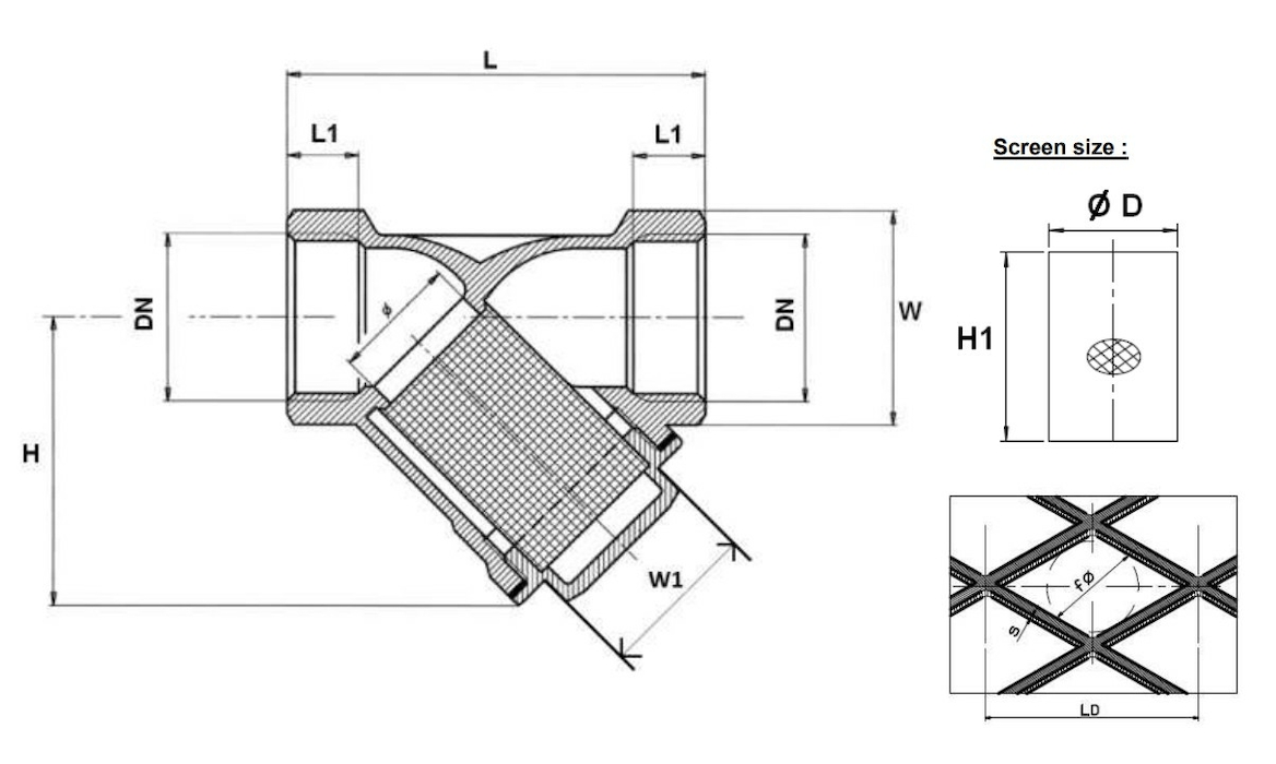 - Filtr siatkowy do gazów z brązu