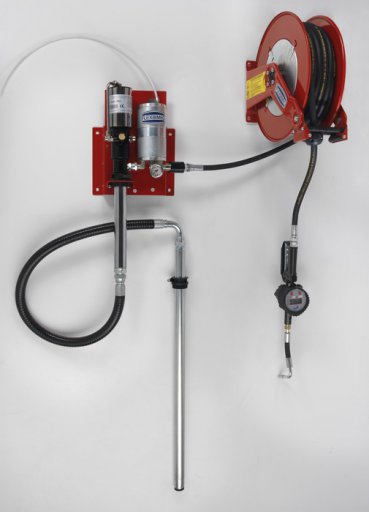 - Zestaw zawieraPneumatyczna pompa olejowa FLB2061; stalowy uchwyt naścienny; rura ssąca ze stali ocynkowanej FLB4340; 1,5 m - gumowy wąż ssący 1" FLB2205; separatora powietrza FLB2050; manometr; zwijacz na wąż FLB9090; 15 m - wąż gumowy 1/2" FLB28715; 2 m - gumowy wąż przyłączeniowy 1/2" FLB28702; elektroniczny miernik przepływu z certyfikatem MID FLB2545; regulator ciśnienia z manometrem, separatorem i smarownicą FLB7150.