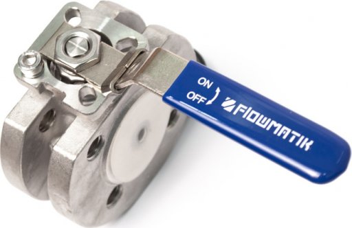 - Zawór kulowy międzykołnierzowy Flowmatik DN50 nierdzewny 316, PTFE, z płytą ISO5211, z blokadą
