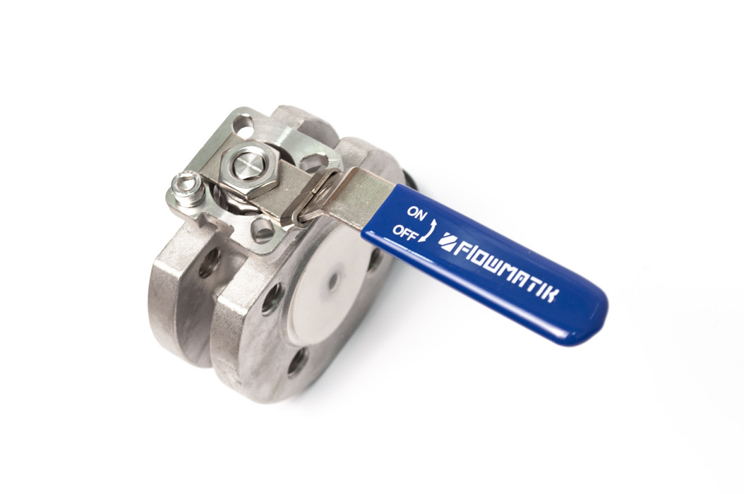 Zawór kulowy międzykołnierzowy Flowmatik DN50 nierdzewny 316, PTFE, z płytą ISO5211, z blokadą FMZK5 DN50