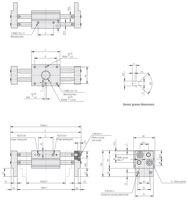 Chwytak pneumatyczny równoległy D32, szeroki GR02F.032