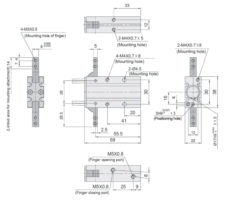 - Chwytak pneumatyczny kątowy 180°, D16