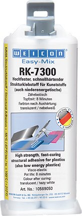Easy-Mix RK-7300 to klej strukturalny na bazie MMA (metakrylan metylu), który jest wykorzystywany do łączenia elementów o różnych właściwościach, takich jak metal, tworzywa sztuczne, ceramika, drewno i inne materiały.