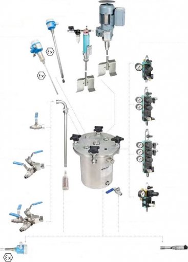 - Konfiguracja zbiornika materiałowego do farb, lakierów i klejów