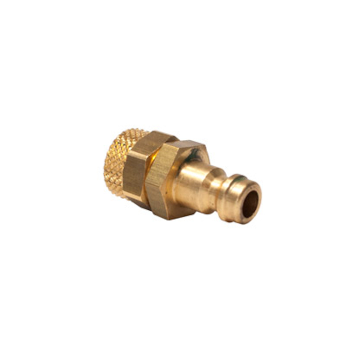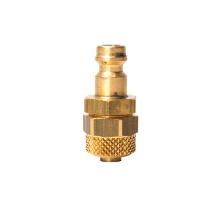 - Króciec do szybkozłączy DN 5 z nakrętką i sprężyną do węża spiralnych, mosiądz, do 35 bar, temp -20 °C do + 100 °C