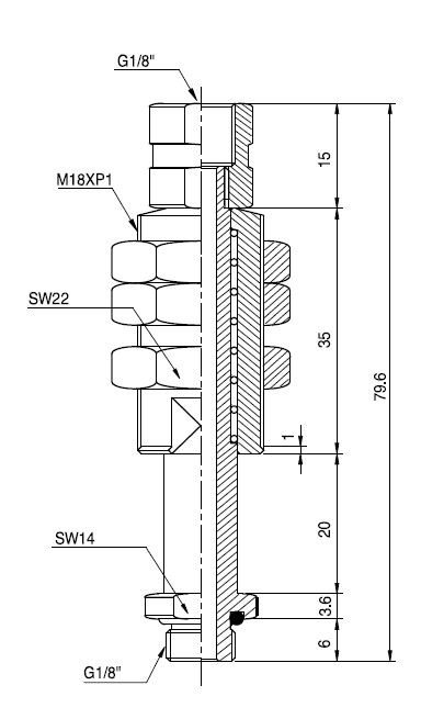 - Kompensator poziomu, skok 20mm G1/8z. M18x1,0 dł.79,6mm
