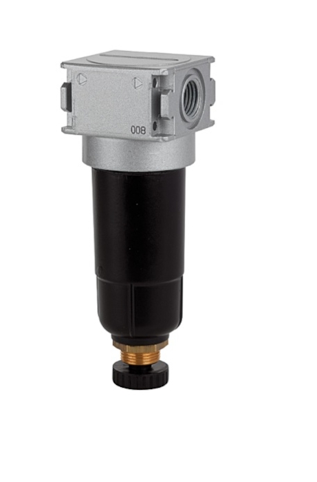 - Mikrofiltr serii multifix-mini z metalową szklanką, 0,01 μm, rozmiary gwintów 1/8", 1/4"