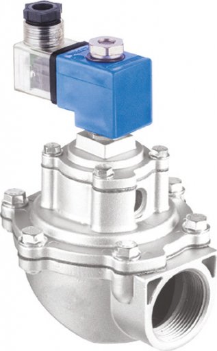 - Zawór elektromagnetyczny impulsowy kątowy 2/2 NC, G 2, 230V AC, normalnie zamknięty