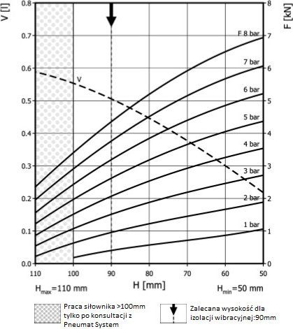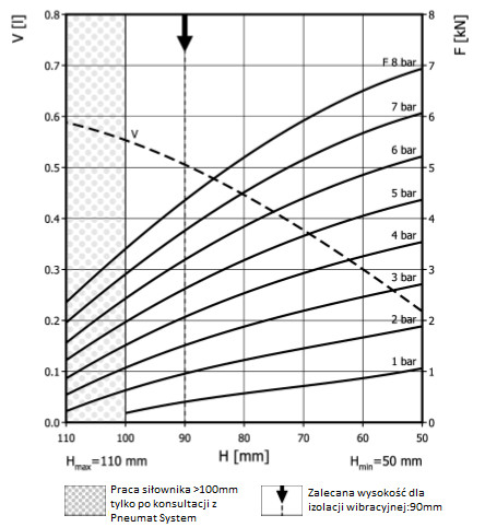 | Siła uzyskana na H max przy 6 barach | 2,3 - 71 kN |