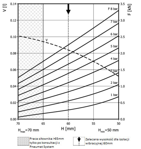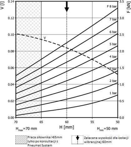 | Siła uzyskana na H max przy 6 barach | 1,25 - 27 kN |