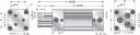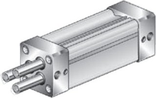 - Siłownik trzytłoczyskowy AW7 D32-63 z otworami przelotowymi w tłoczyskach