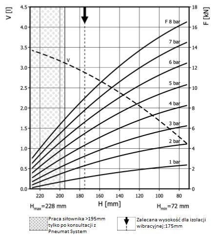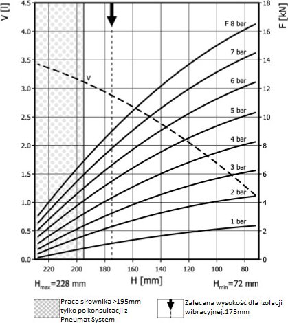 - Dmax. 203 mmPrzestrzeń potrzebna do instalacji [C]215 mmH max195 mmH min72 mmSiła uzyskana na H max przy 6 barach5 kN