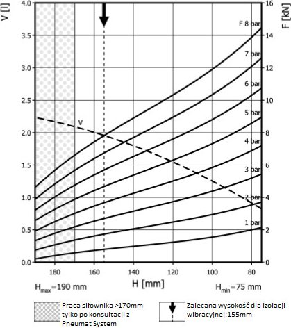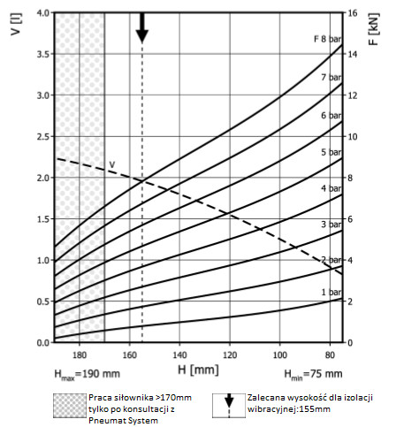 - Dmax. 178 mmPrzestrzeń potrzebna do instalacji [C]195 mmH max170 mmH min75 mmSiła uzyskana na H max przy 6 barach4,5 kN