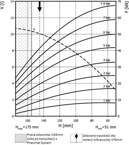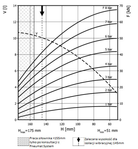 - Dmax. 385 mmPrzestrzeń potrzebna do instalacji [C]400 mmH max155 mmH min51 mmSiła uzyskana na H max przy 6 barach26 kN
