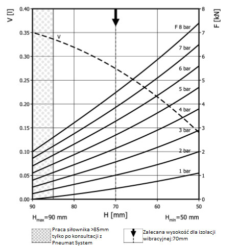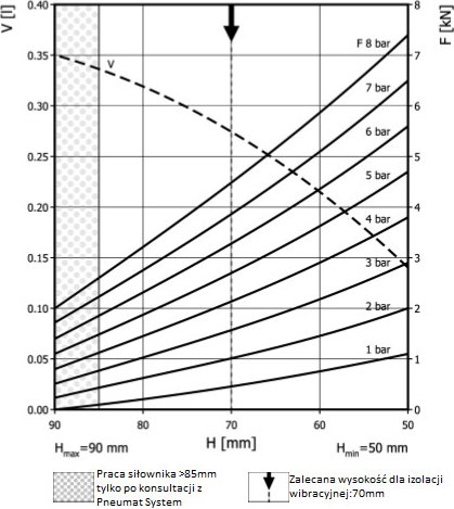 - Dmax. 125 mmPrzestrzeń potrzebna do instalacji [C]140 mmH max85 mmH min50 mmSiła uzyskana na H max przy 6 barach1,7 kN