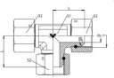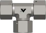 - Trójnik hydrauliczny z nakrętką obrotową, gwint wewnętrzny cylindryczny, stal nierdzewna 1.4571 (316 Ti)