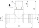 - Trójnik wtykowy T, gwint zewnętrzny cylindryczny G, seria BlueLine, ciśnienie 15bar, o-ring, tworzywo PBT/mosiądz niklowany