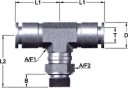 - Trójnik wtykowy T obrotowy, gwint zewnętrzny cylindryczny G, ciśnienie 20 bar, stal nierdzewna 316 L