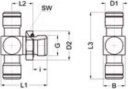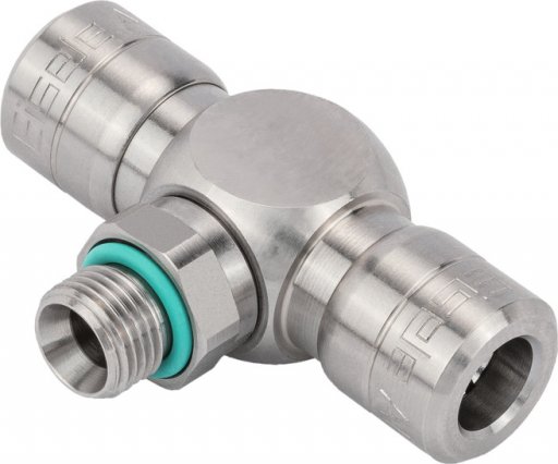 - Trójnik wtykowy T obrotowy, gwint zewnętrzny cylindryczny G, Eisele, ciśnienie 16bar, stal nierdzewna 1.4301/1.4307