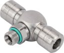 Trójnik wtykowy T obrotowy, gwint zewnętrzny cylindryczny G, Eisele, ciśnienie 16bar, stal nierdzewna 1.4301/1.4307