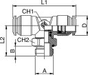 Trójnik pneumatyczny wtykowy obrotowy typu T, G 1/8 GZ do węża fi 4 mm, mosiądz niklowany
