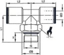 - Trójnik wtykowy T obrotowy z gwintem zewnętrznym, FPM o-ring