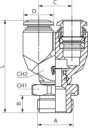 Złączka wtykowa kątowa łożyskowana R 1/4 GZ do węża fi 4 mm, prędkość 500 obr/min