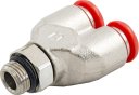 Trójnik pneumatyczny obrotowy wtykowy typu Y, G 1/8 GZ do węża fi 4 mm, mosiądz niklowany