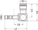 Złączka wtykowa kątowa łożyskowana R 1/4 GZ do węża fi 4 mm, prędkość 500 obr/min
