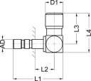 Złączka wtykowa kątowa łożyskowana R 1/4 GZ do węża fi 4 mm, prędkość 500 obr/min