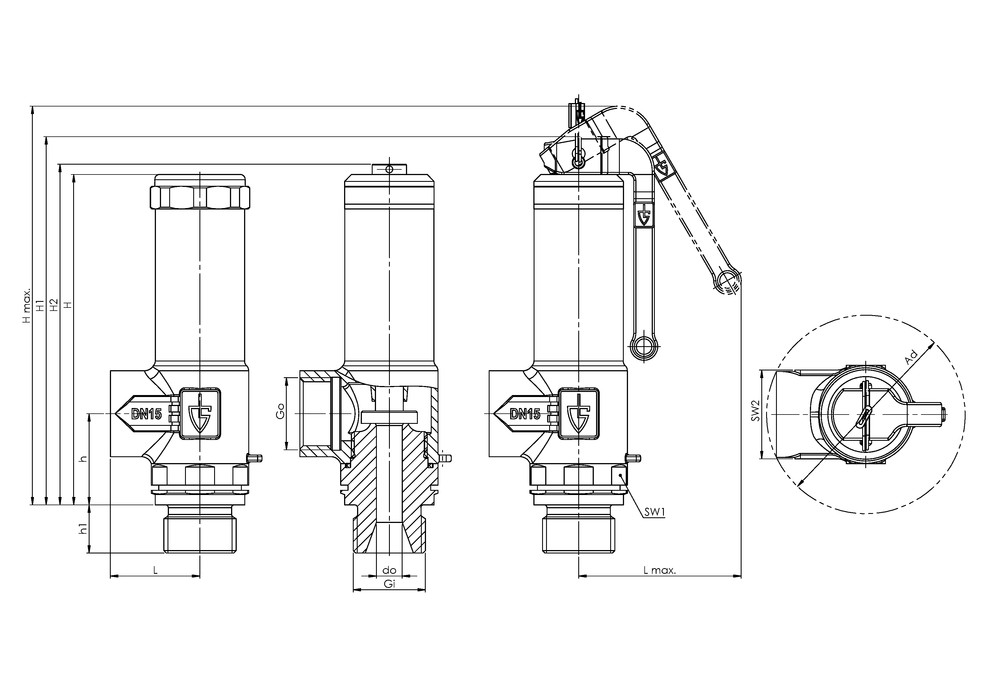 - Zawór bezpieczeństwa do oparów kriogenicznych DN15 gwinty 1/2"-1/2" ze stali nierdzewnej