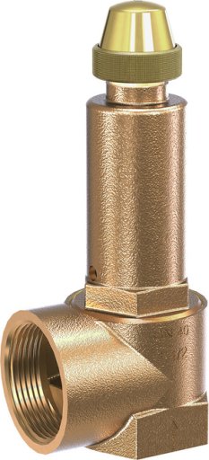 Zawór bezpieczeństwa kątowy z brązu DN40 gwinty 1 1/2"-1 1/2" do pary, nastawy do 3 bar