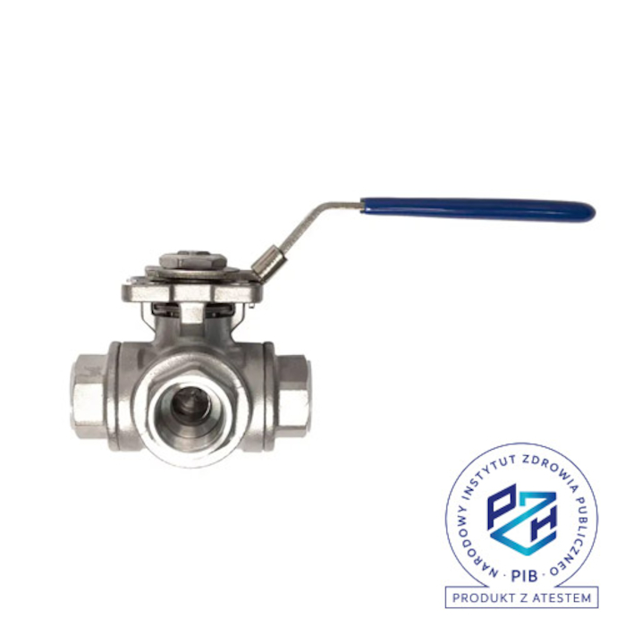 Zawór kulowy 3-drożny gwintowany nierdzewny kula "T" Flowmatik z płytą ISO PN63 1/2"-1"