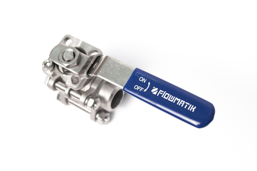 Zawór kulowy 3-elementowy nierdzewny do wspawania FLOWMATIK 316 PTFE PN63 z płytą ISO 1/2"-4" z blokadą