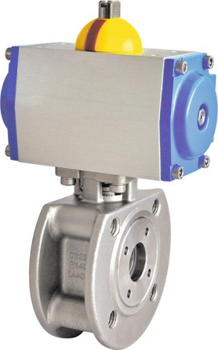 Zawór kulowy kołnierzowy kompaktowy nierdzewny FLOWMATIK z napędem pneumatycznym podwójnego działania PN16 316 krótka zabudowa wafer DN15-DN100