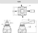 Zawór rozdzielający mini 3/2 do węża fi 4 mm, NC z dźwignią jednokierunkową, przyłącze boczne