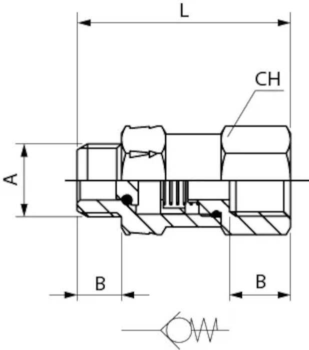 - Zawór zwrotny gwintowany 6163 mosiądz niklowany NBR, przepływ zew/wew