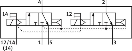 Funkcja zaworu 2x3/2 zamknięty monostabilny - 5/3 zasilony