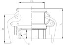 - Złącze Camlock typ B z zabezpieczeniem, gwint cylindryczny zewnętrzny G, stal nierdzewna AISI 316/1.4401, uszczelnienie NBR, do 16bar, temp do 100°C