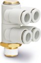 - Złącze wtykowe, uniwersalne, rozgałęźnik, kątowe, 4-krotne, z gwintem zewnętrznym KQ2ZD