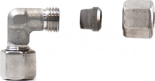 - Złączka skręcana kątowa wysokociśnieniowa do rur stalowych, DIN 2353, ciśnienie 250bar, stal nierdzewna 316Ti
